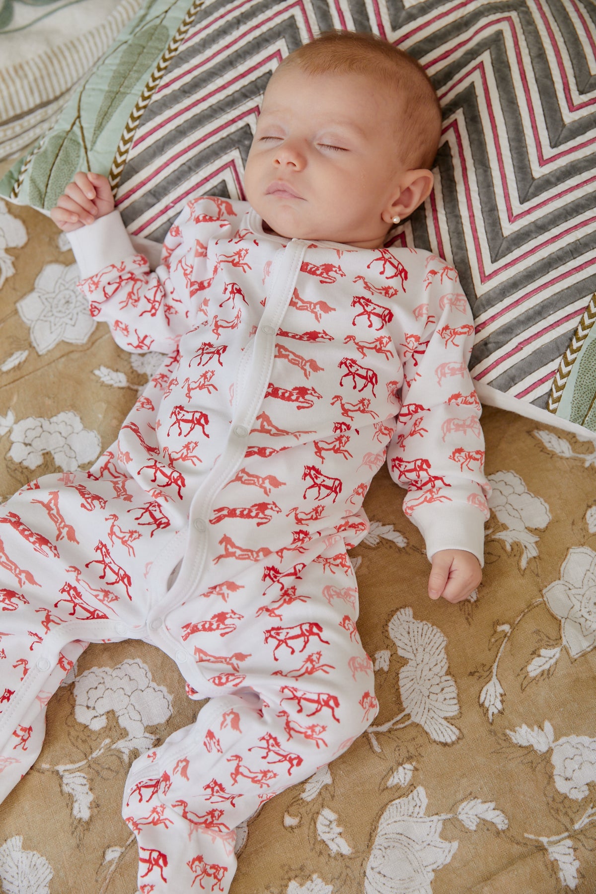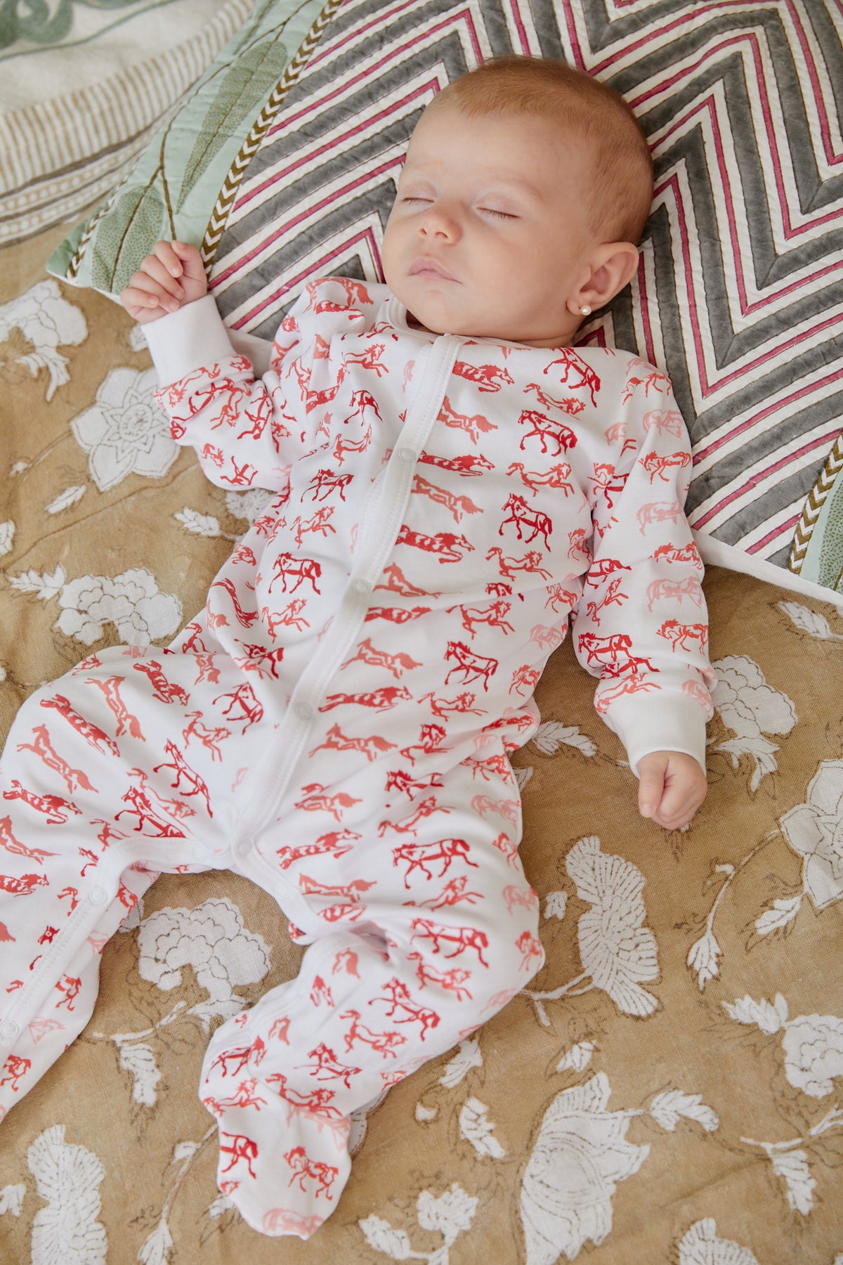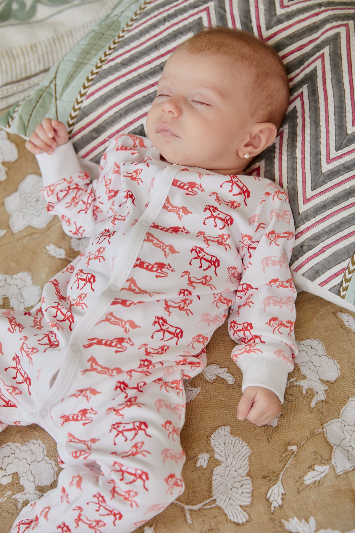 CASEY INFANT PAJAMA SUIT WILD HORSES SCARLET