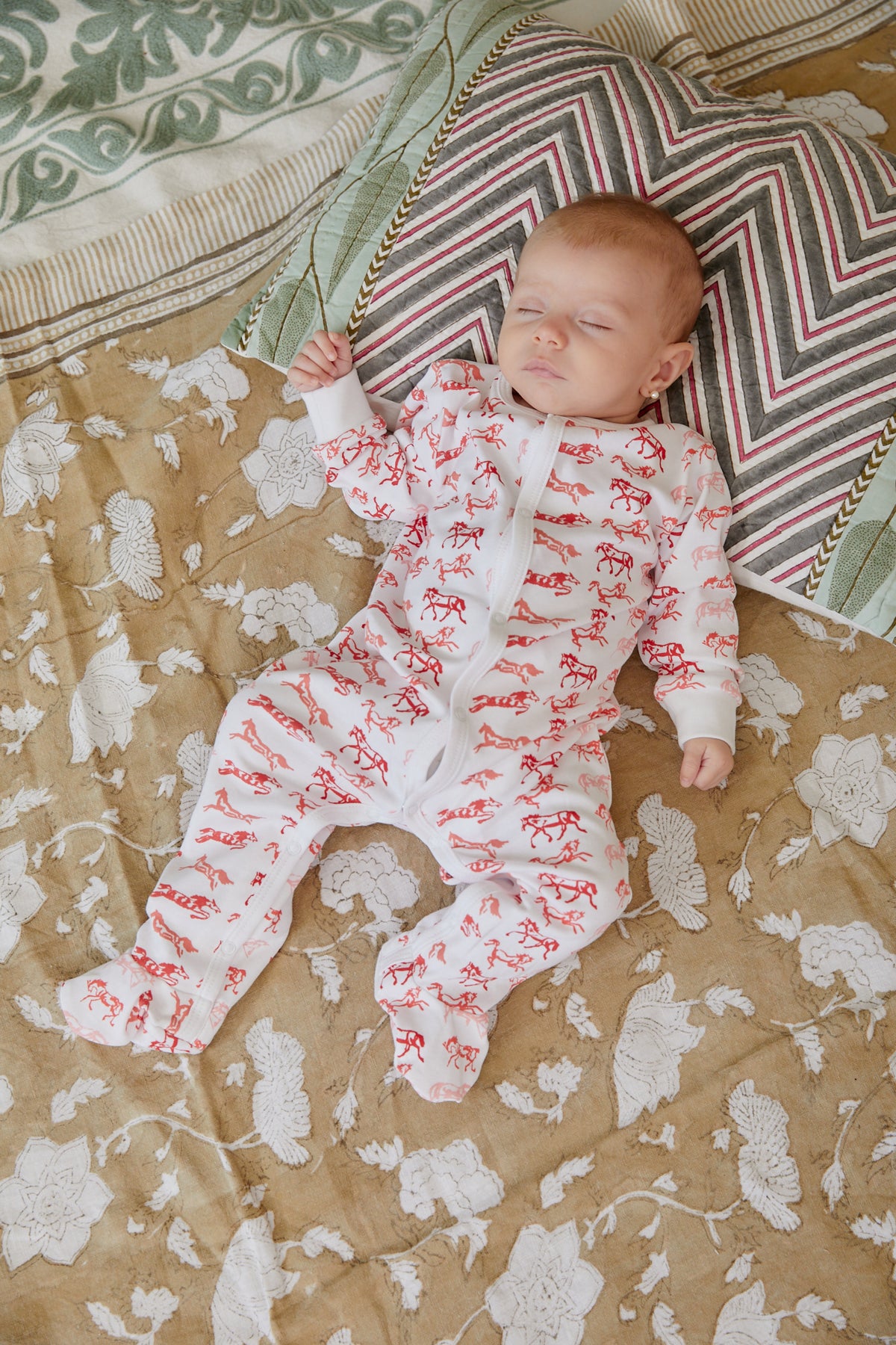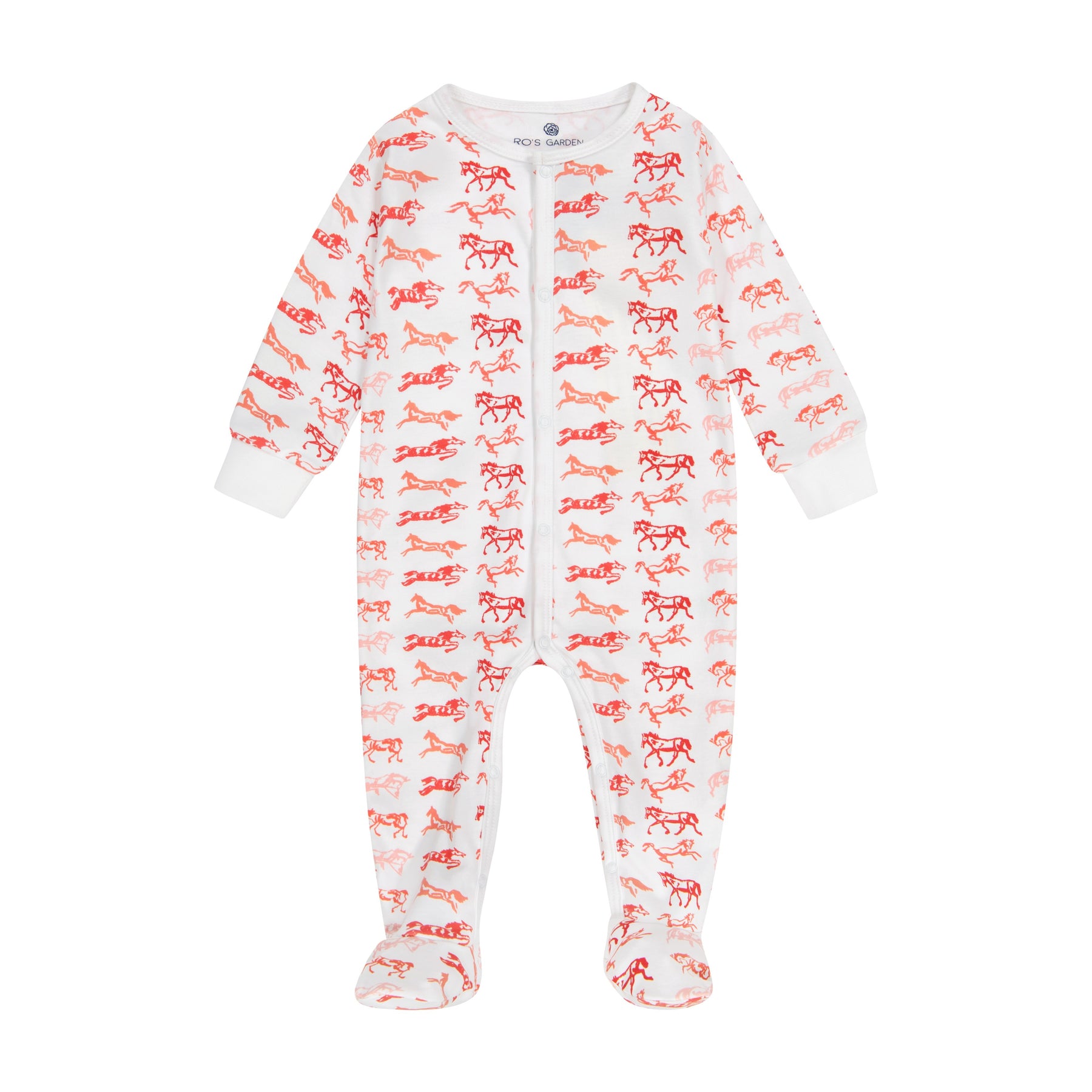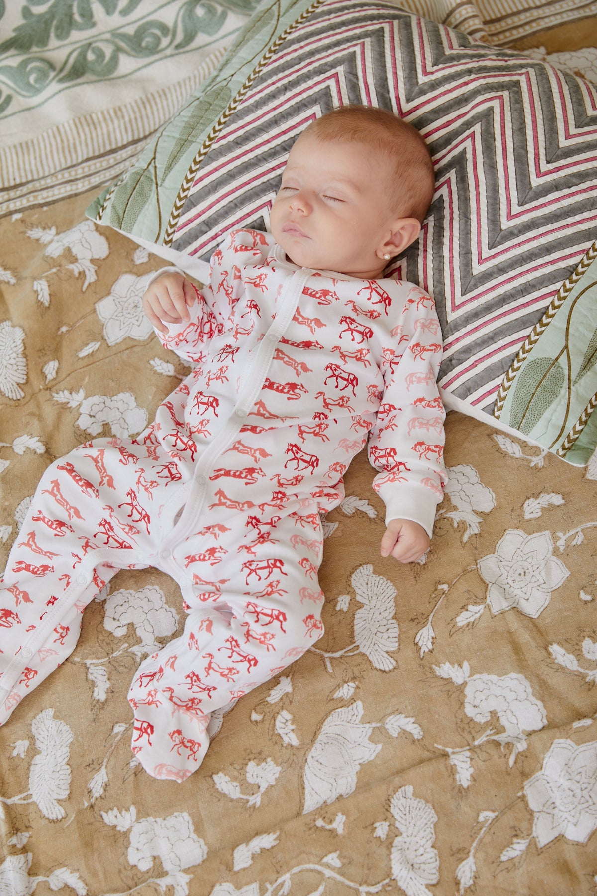 CASEY INFANT PAJAMA SUIT WILD HORSES SCARLET
